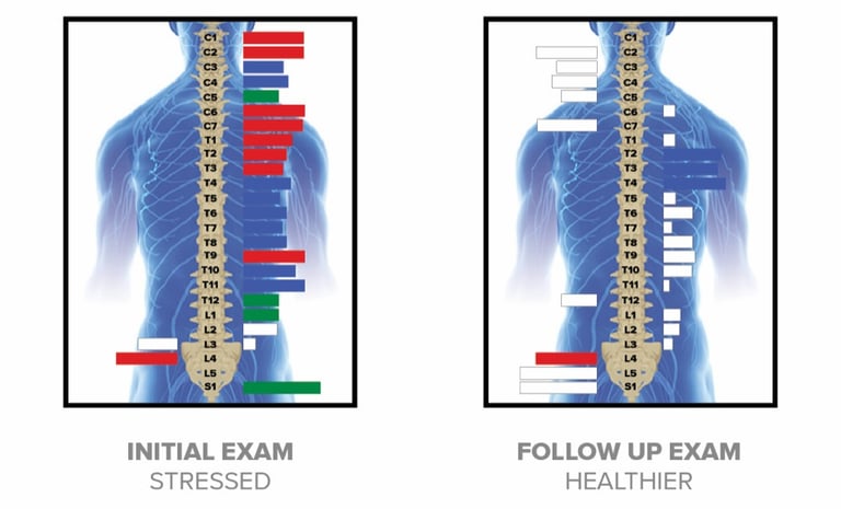 During your initial chiropractic visit, we use Insight Scans to create a baseline of your nervous system health. This helps us: